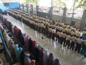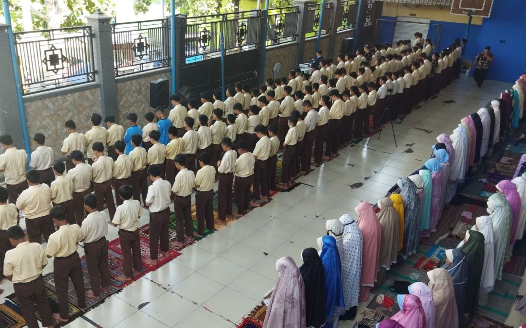 TULANGAN, 17 OKTOBER 2023 – Acara ini diadakan di hall basket smp muhammadiyah 5 tulangan dan diikuti oleh seluruh siswa dan guru. kegiatan ini diawali dengan 2 rokaat sholat dhuha untuk kemudian dilanjutkan dengan sholat ghaib, tausiyah dan doa bersama. Sholat ghoib dipimpin oleh Muhammadun. Selain sholat ghoib secara berjamaah siswa juga diberikan tausiyah lagsung dari Abdillah Adi selaku ketua Pimpinan Cabang Muhammadiya Tulangan.